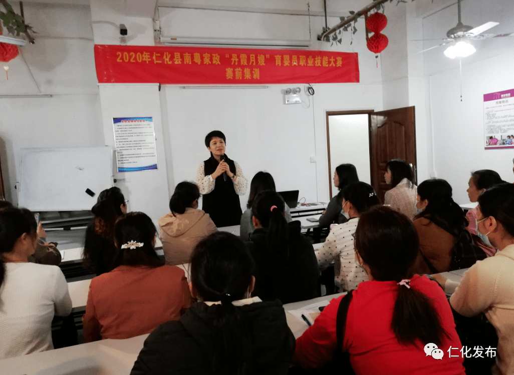 11月15日,仁化县开展南粤家政“丹霞月嫂”育婴员职业技能大赛赛前集训活动。邀请了广州市海之珠南粤家政学院专家胡恵华老师前来授课,仁化县80名家政从业人员参加。