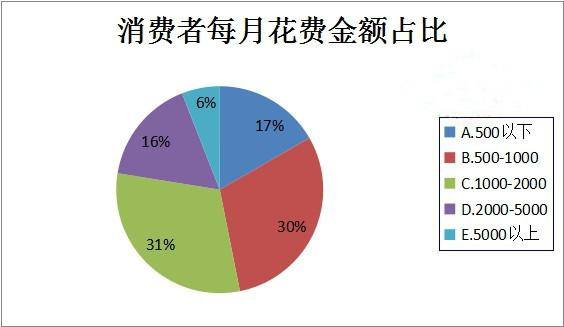 在每月家政服务消费金额上,大部分消费者每月花费在 1000-2000 元。每月花费 500 元以下的占 17%;500-1000 元的占 30%;1000-2000 元的消费者占 31%;2000-5000 元占 16%;花费 5000 元以上的消费者占 6%。