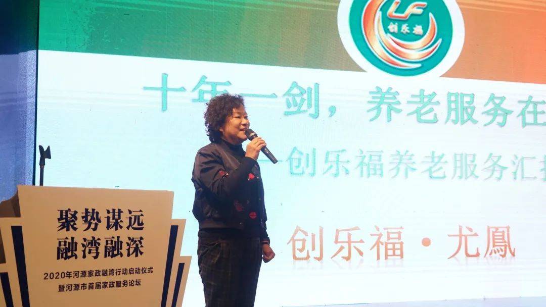 广东省家庭服务业协会副会长、深圳市创乐福养生养老产业有限公司董事长尤凤,她分享的主题是《十年一剑,养老服务在起点》。