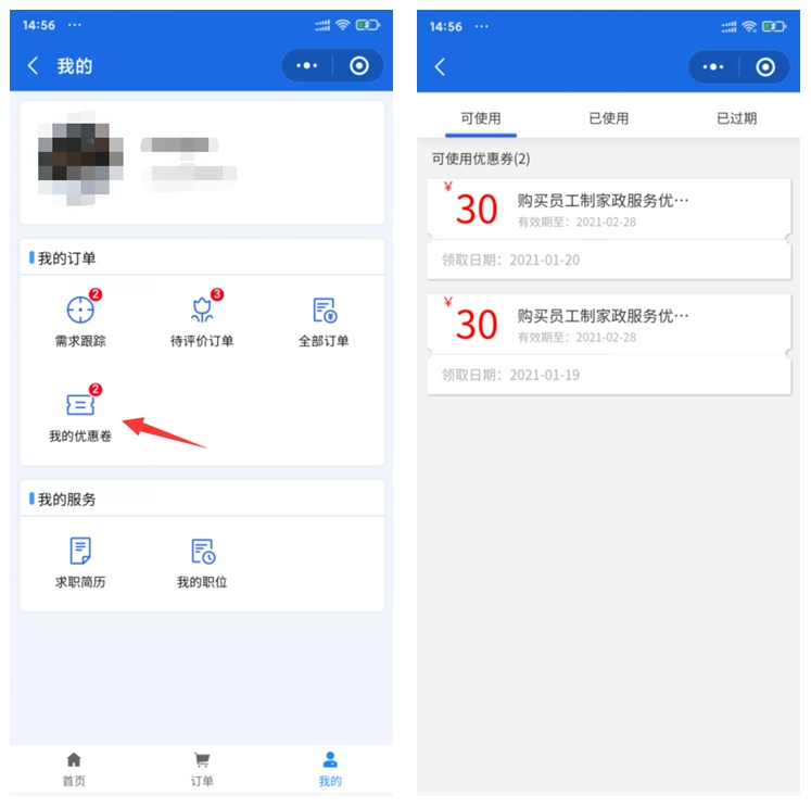 优惠券自1月25日起可正式使用,参加家政优惠券活动的商家在平台上会有“可使用优惠券”的标识,消费者通过平台发起家政服务订单时,可以选择使用已领取的优惠券,服务完成后向商家支付优惠后的金额。