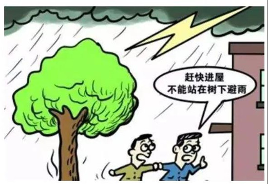 1.外出如遇雷雨,可以蹲下,尽量降低自己的高度,同时将双脚并拢,减少跨步电压带来的危害,不要在大树底下避雨。下雨时不要在水边(江、河、塘、渠、水库等)、洼地停留,要迅速到附近干燥的住房避雨。