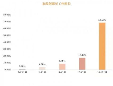 家政服务行业重视“工作经验”,调查数据显示,47.1%的家政阿姨有6年及以上的从业时长,表明家政服务行业的粘性在增强,待遇在改善,人员留得住、干得长,这也是家政服务业日趋规范化、标准化发展的良好体现。