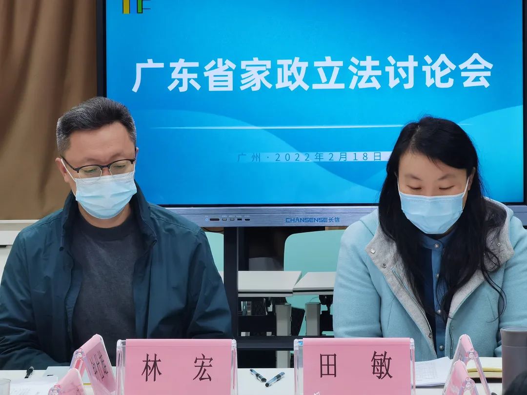 2022年2月18日,省商务厅召开《广东省家政服务条例》立法座谈会,广东省商务厅服贸处副处长田敏、科长林宏,广东省家庭服务业协会常务副会长兼秘书长李丽蓉、副秘书长陈健,惠州家庭服务业协会常务副会长、惠州拓普家政服务有限公司董事长欧阳骏良,广东省居家养老服务协会副会长、广州谷丰健康产业投资有限公司副总裁钟仕雄,广州千样好家庭服务有限公司董事长赖秋月,广州广府人家信息科技有限公司总经理冯恩荣,广州市南沙区老年教育协会会长李宝华,清远职业技术学院旅游家政与艺术学院教授、项目负责人王飞生,律师代表林塭丰、雇主代表孙清清、从业人员代表劳月红出席了会议。
