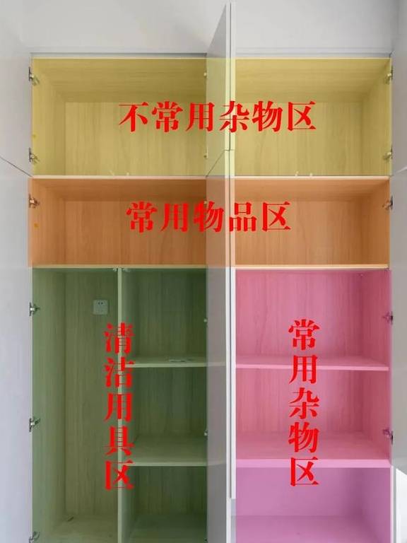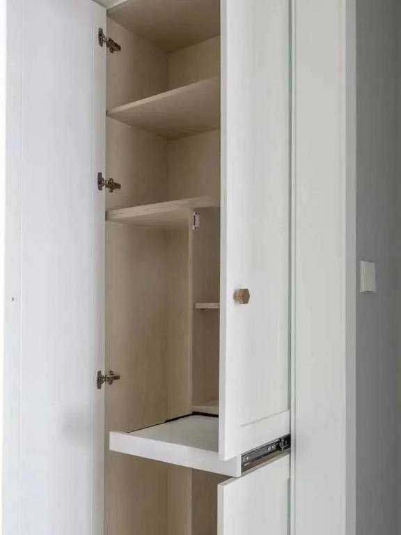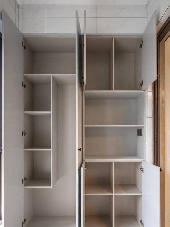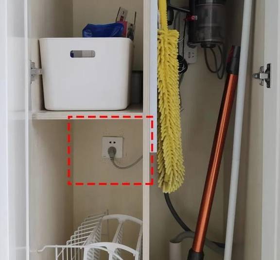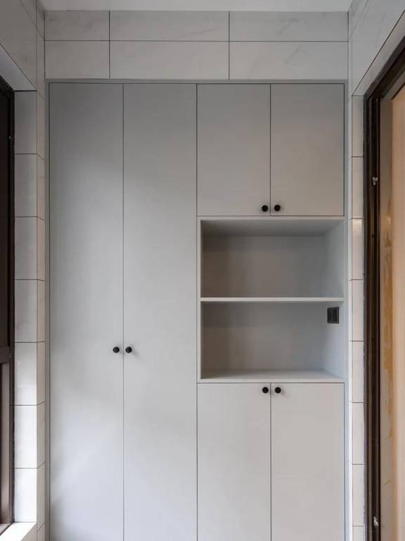 家政柜内部建议根据实际收纳进行分区,最重要的就是留足够高度的清洁工具区。整体柜体深度建议设计在0.3-0.45cm之间,作为日常收纳;高度建议顶天立地设计。如果用吸尘器的话,柜体内部建议留插座,方便充电。