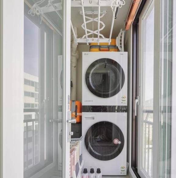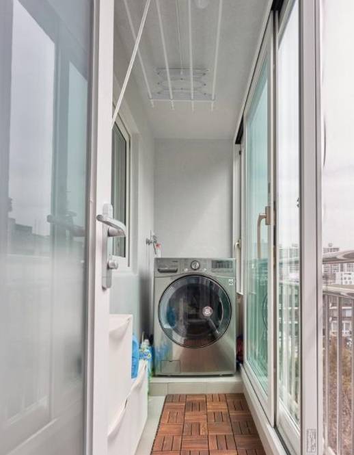 阳台改为家政间,有独有优势:如占面积较小,不影响阳台晾晒;通风条件好,不担心滋生细菌。