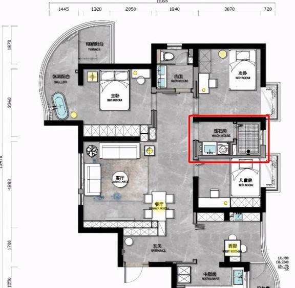 ③客卫过道改家政区。《悦己》的设计中,便将卫生间门口过道处设计为家政间,空间利用率超高的。