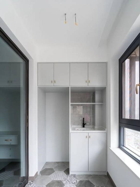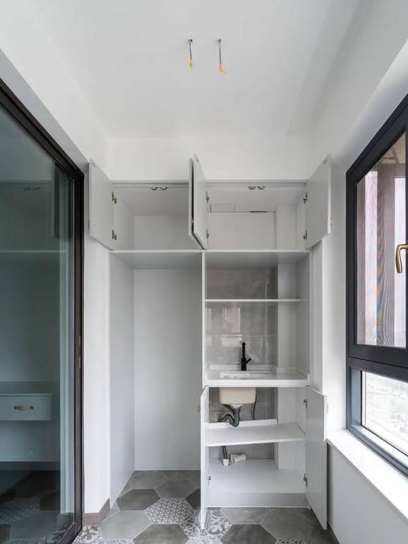 2、阳台家政间。阳台是最常设计为家政区的空间,将阳台设计为家政间非常合适。
